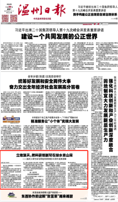 根植于温州创新的土壤,立足于美丽中国建设主战场,全面贯彻党的教育方针,一代代“生环人”把科研创新写在祖国的大地上,不负绿水青山!