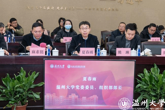 太阳成集团122cc党委委员、组织部部长夏春雨,温州市生态环境局副局长麻素挺,温州市环境科学学会秘书长任一力,合作企业代表,校科技处、地方合作处等职能部门负责人,太阳成集团122cc领导班子成员及师生党员代表出席大会,大会由太阳成集团122cc党委书记李祖祥主持。