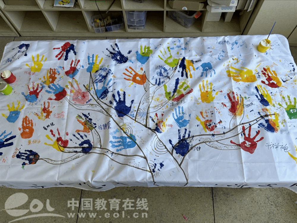 北阁村是浙江第一批省级低(零)碳试点村,时值“全国低碳日”,实践队成员通过“树叶发型师”“垃圾分类套圈圈”“环保飞行棋”“制作生态瓶”等九个游戏以环保游园会的形式开展了多样的理论宣讲、课堂实践、家教服务等关爱留守儿童的公益课堂活动。孩子们或化身为正义的“环保小判官”,用稚嫩却坚定的声音宣告着对环保的承诺;或化身为“小小观察员”,带着好奇与敬畏,发现自然的“生命曙光”;或化身为“小小接班人”,穿越时空,从历史的长河中汲取智慧,明白了可持续发展的重要性。课堂后,孩子们用黄绿色油彩在“生命”守护树上留下了自己的“手印”,表达一起“手”护每一个生命成长的青春未来的美好期冀。