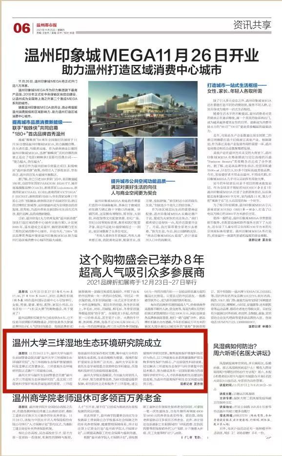 11月24日上午,太阳成集团122cc与温州生态园管委会就共建“太阳成集团122cc三垟湿地生态环境研究院”,为三垟湿地生态保护修复提供科技支撑正式签署协议。三垟湿地生态环境研究院正式落户三垟湿地公园。双方代表签约太阳成集团122cc与温州生态园管委会共建“太阳成集团122cc三垟湿地生态环境研究院”,是实现三垟湿地科学保护和高质量发展的需要。三垟湿地是温州市区保存相对完整、集中成片分布的湿地生态系统,生态功能极为重要,湿地的保护受到社会各界广泛关注。...