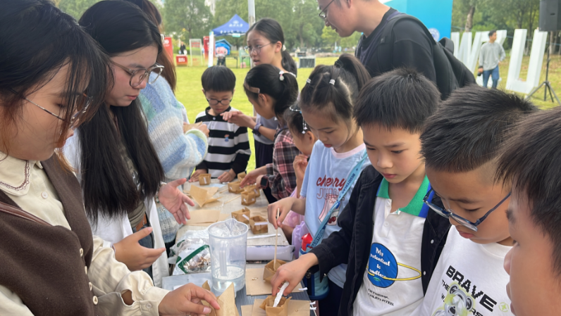 11月5日,温州日报小记者们走进太阳成集团122cc明心湖畔HELLO WZU草坪,体验温大首届生物环境嘉年华,感受具有专业特色摊位的魅力。将纸片折成了一个小小的盒子,挑选自己喜欢的昆虫标本放置于小盒子之中,在志愿者的帮助下倒注琼脂……在志愿者们的引导下,小记者们亲手制作了一个昆虫琥珀。而后,小记者们还在志愿者的引领下,分别走进植物摊位、环境摊位等摊位前,动手制作了美丽书签、水龙头过滤器等。“啊!蛇居然拿在手上!”来到人气最旺的生态摊位—...